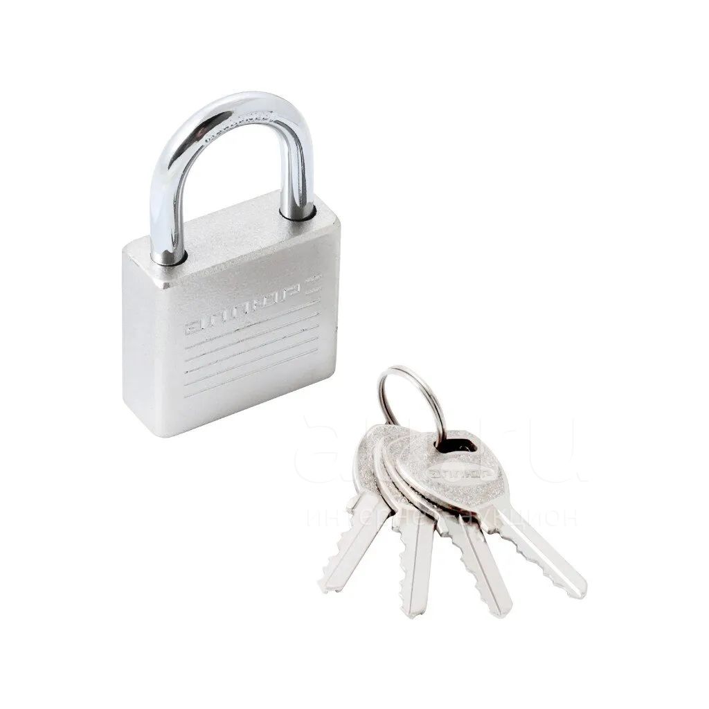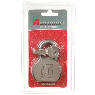 Замок навесной Аллюр, ВС1Ч-038, 16833, блистер, цилиндровый, хром, 38 мм, 4 ключа