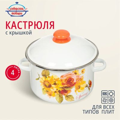 449руб.Кастрюля эмалированная сталь, 4 л, крышка сталь, цилиндрическая, Сиби...