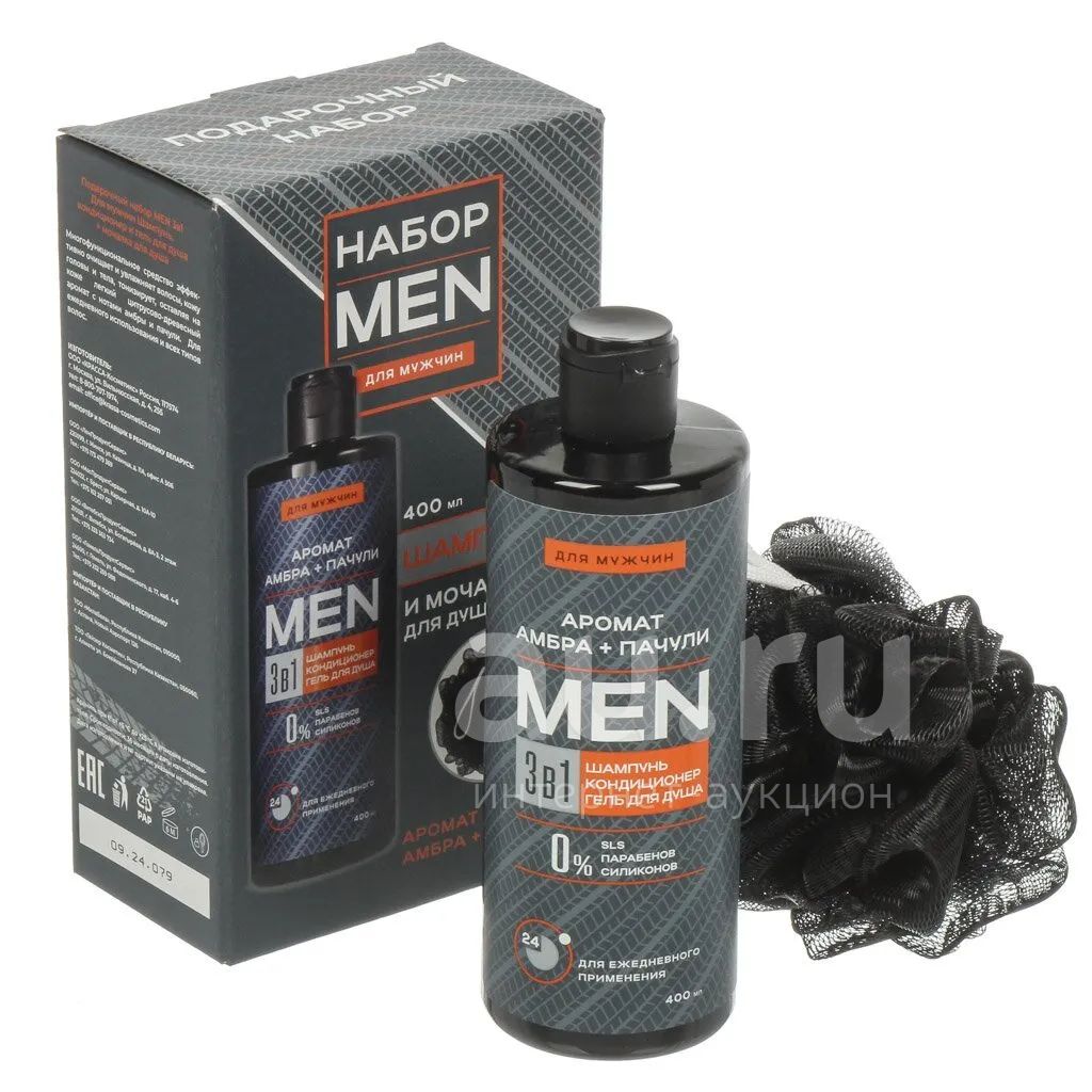 Набор подарочный мужской, Men 3в1, шампунь, кондиционер и гель для душа + мочалка