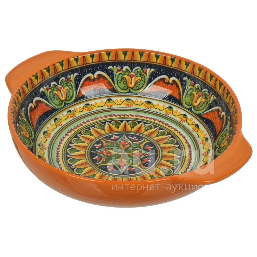 Салатник фарфор, круглый, 24.5х20.5 см, 1.2 л, с ручками, Arabesque, 0860224, оранжевый