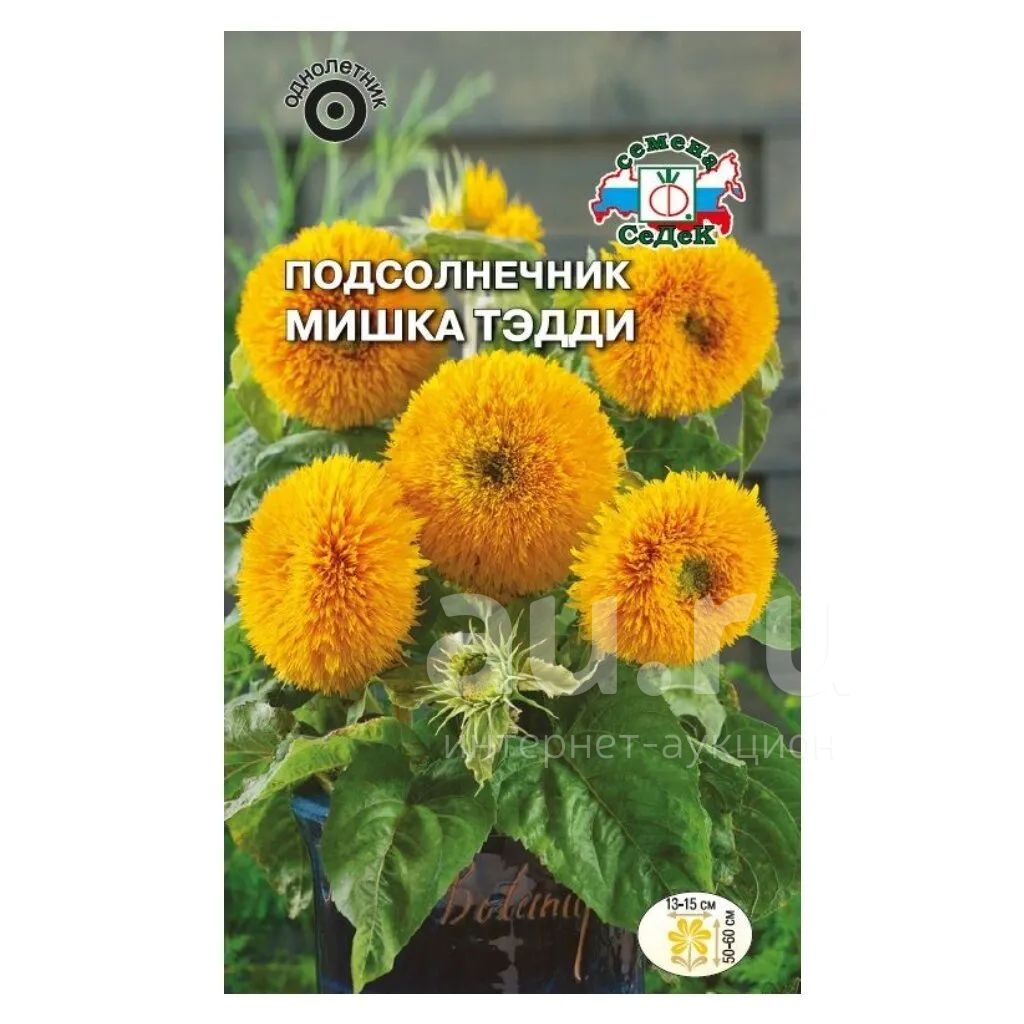 Семена Цветы, Подсолнечник, Мишка Тэдди махровый, низкорослый, цветная упаковка, Седек
