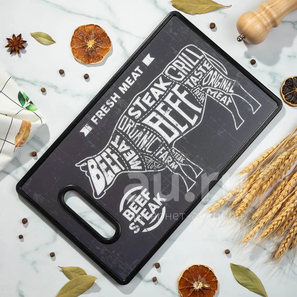 Доска разделочная пластик, 37х23 см, с ручкой, прямоугольная, Стейк, Y4-7883