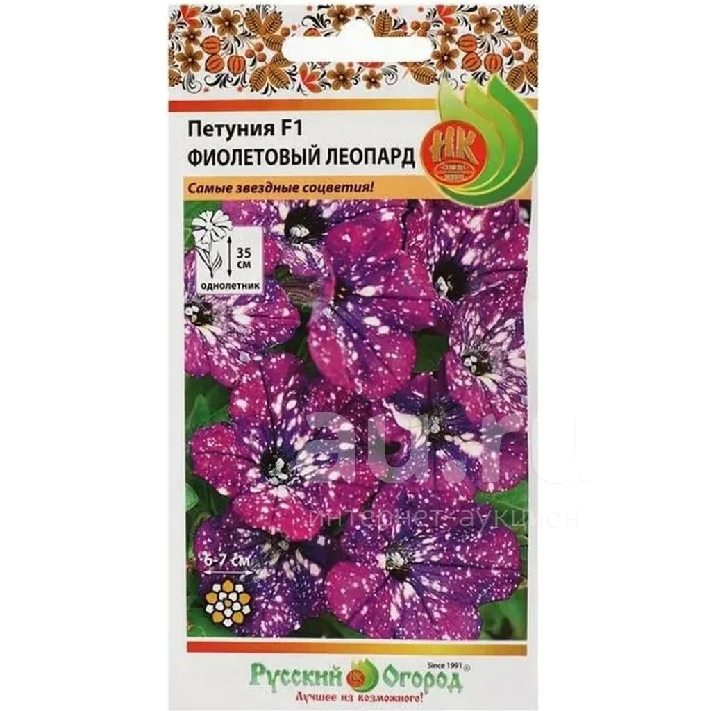 Семена Цветы, Петуния, Фиолетовый леопард F1, цветная упаковка, Русский огород