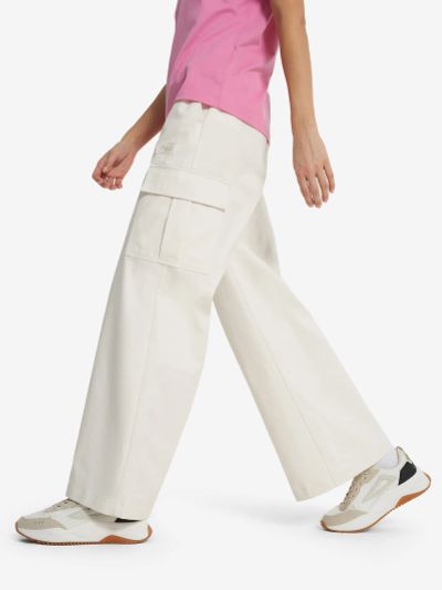 В широких брюках FILA с защипами спереди ты будешь наслаждаться прогулками по городу, не отвлекаясь на неудобства. Благодаря свободному крою, высокой талии и прямому силуэту модель стильно выглядит и не сковывает движения. В 2 боковых кармана поместятся смартфон и ключи. Необязательно брать с собой сумку. Широкий пояс с удобным регулировочным шнурком поможет подогнать посадку модели по фигуре. Мягкий материал с пич-эффектом тактильно напоминает текстуру спелого персика.