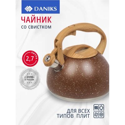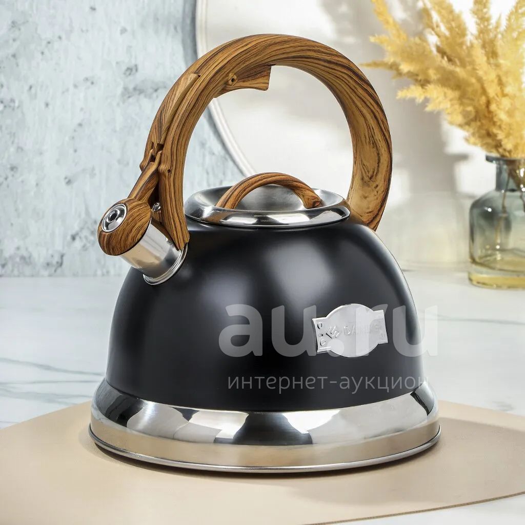 43руб.Чайник нержавеющая сталь, 3.4 л, со свистком, матовый, нейлон, Daniks...