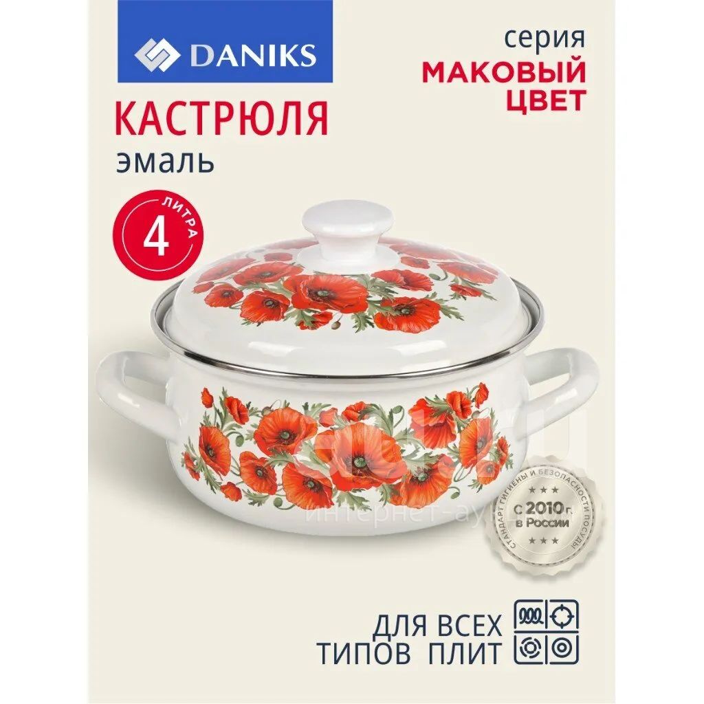 Кастрюля Daniks «Маковый цвет» 4 л — практичное решение для дома и дачи: долговечная эмалированная сталь, стильный дизайн, подходит для любых блюд.