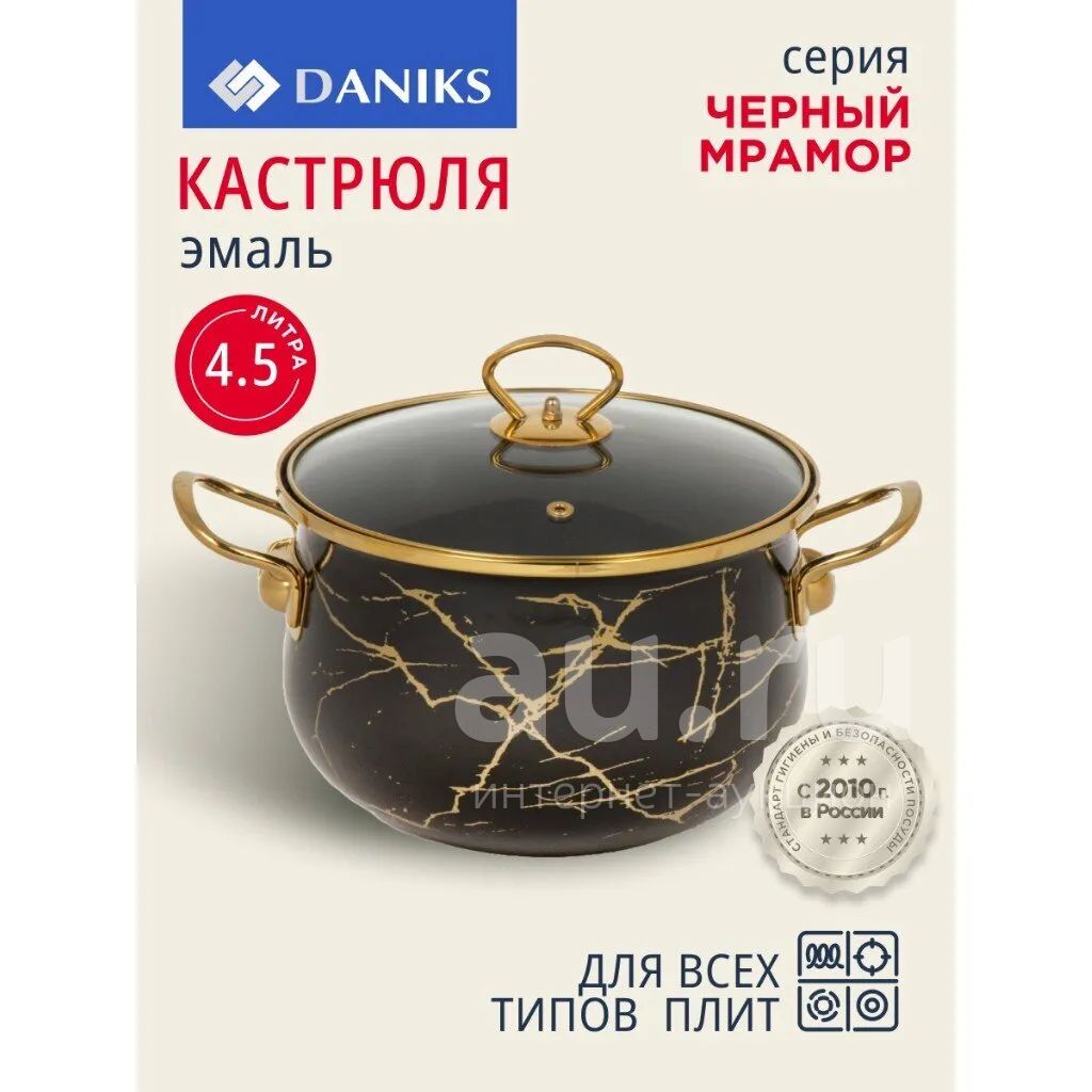 Кастрюля Daniks 4.5 л Черный мрамор: для индукции, стеклянная крышка, стиль и практичность для идеальных домашних блюд