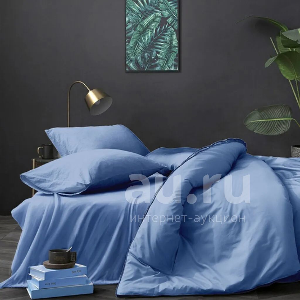Постельное белье евро, простыня 215х240 см, 2 наволочки 70х70 см, пододеяльник 200х215 см, Бояртекс, поплин, лазурь, коллекция Luxor