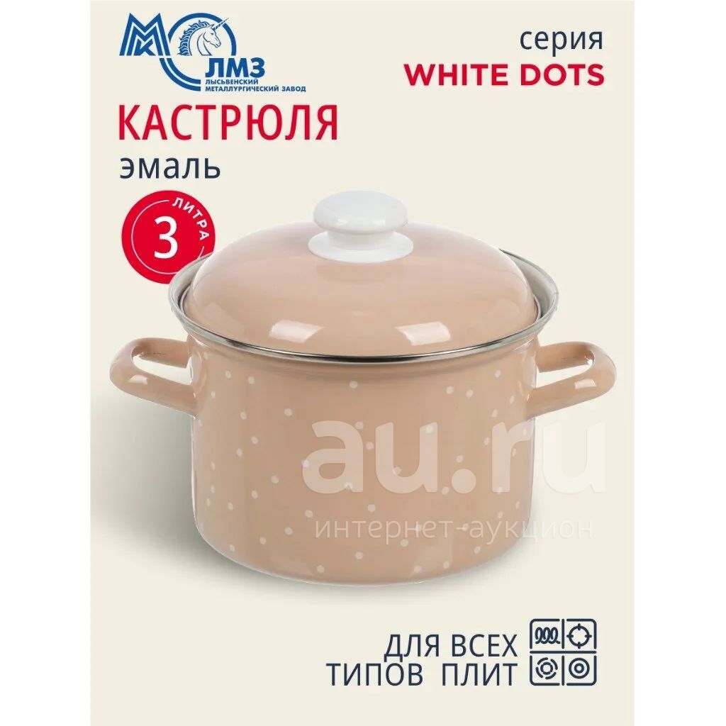 Кастрюля эмалированная сталь, 3 л, крышка сталь, цилиндрическая, ЛЗЭП, White dots, С-1612АП2/8Крр, индукция