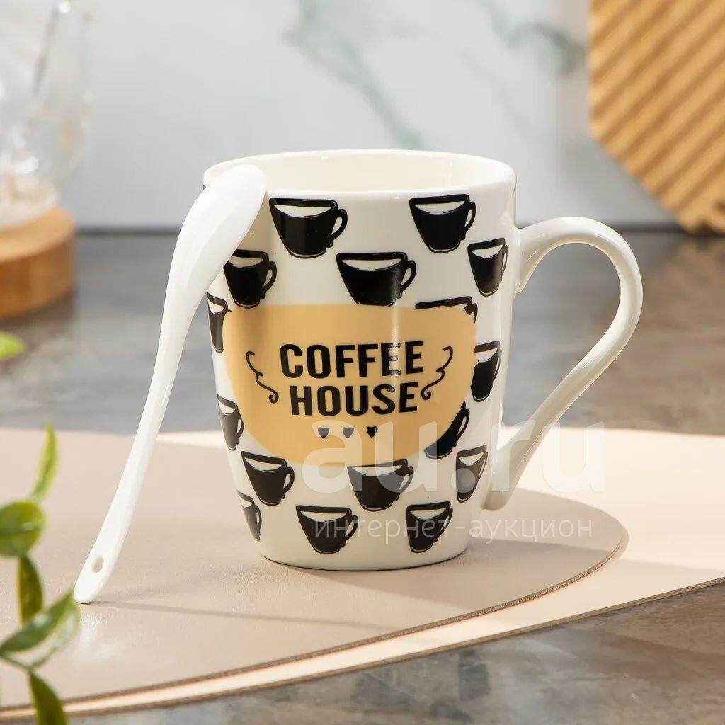 Кружка фарфор, 360 мл, Кофе, с ложкой, с ложкой, подарочная упаковка, Y4-8973