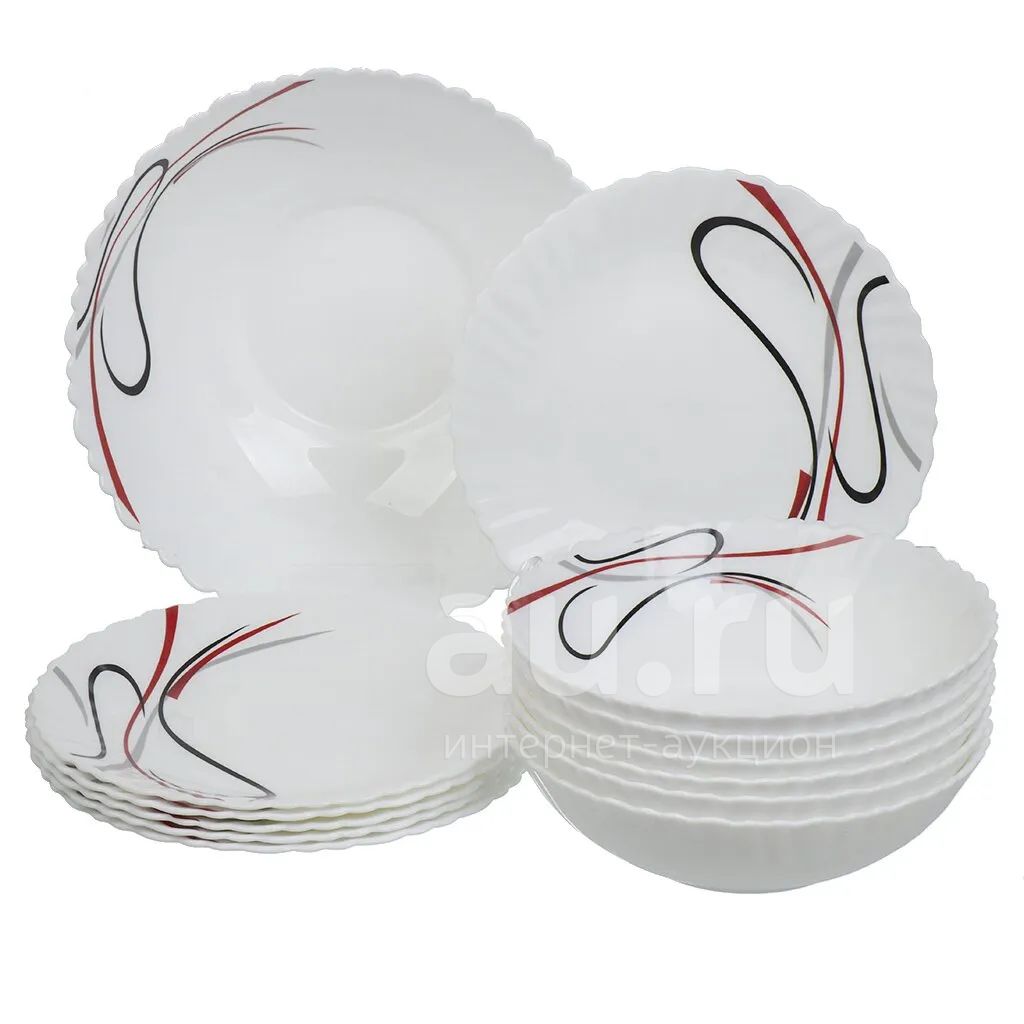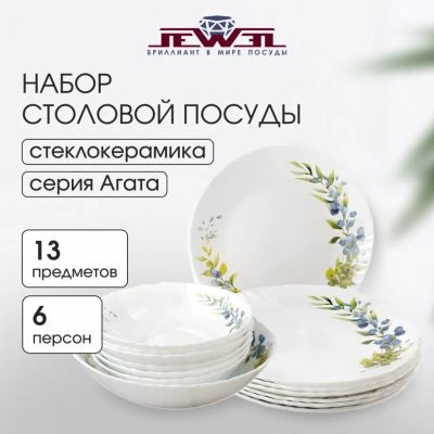 Сервиз столовый стеклокерамика, 13 предметов, на 6 персон, Геометрия, 15016-13т, круглый 1/4