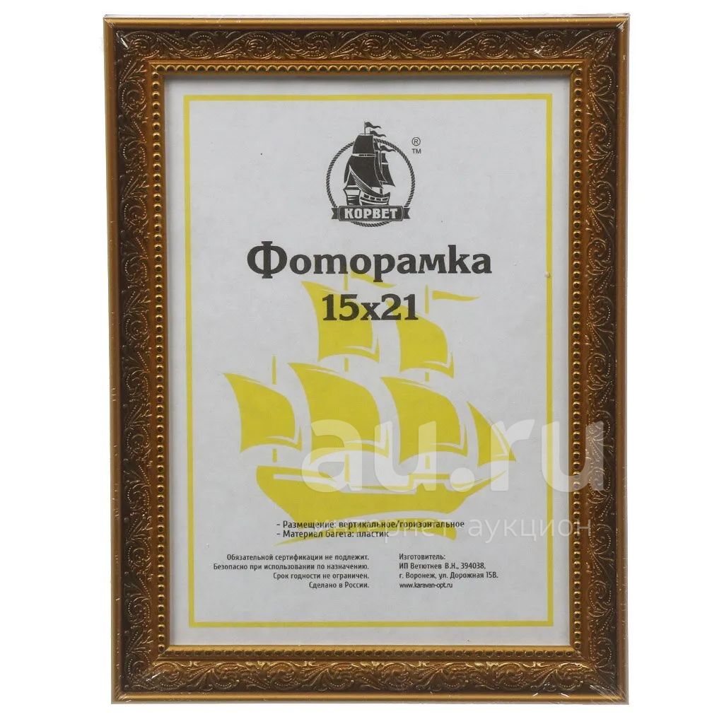 129руб.Фоторамка 15х21 см, пластик, золото, с пленкой ПЭТ, 2013A