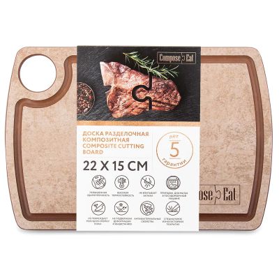 9 120руб.Доска разделочная с желобом ComposeEat 29х22см порфир кремовый