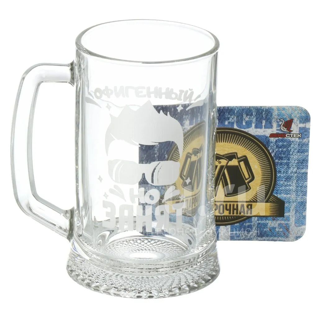 Кружка пивная стекло, 500 мл, Офигенный, Декостек, 1008/1-Г