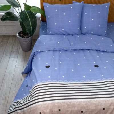Постельное белье 2-спальное, простыня 160х200 см, 2 наволочки 70х70 см, пододеяльник 175х215 см, простыня на резинке, АртПостель, поплин, Ночка