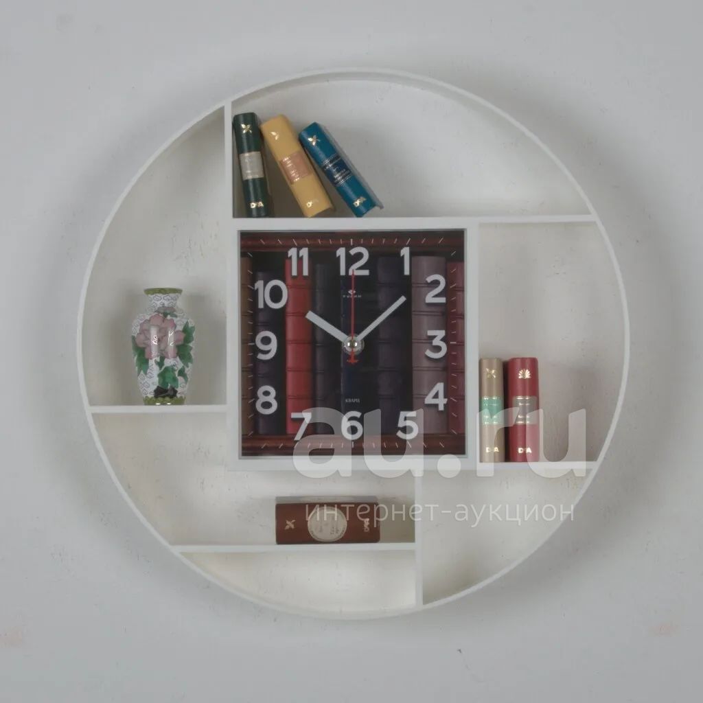 Часы настенные, кварцевые, 35 см, корпус белые, круглые, Рубин, Книги, 351-003