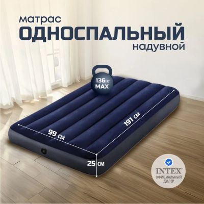 Матрас надувной Intex, 189х72х20 см, 67998, без насоса, флокированный, особопрочный, для кемпинга, 136 кг