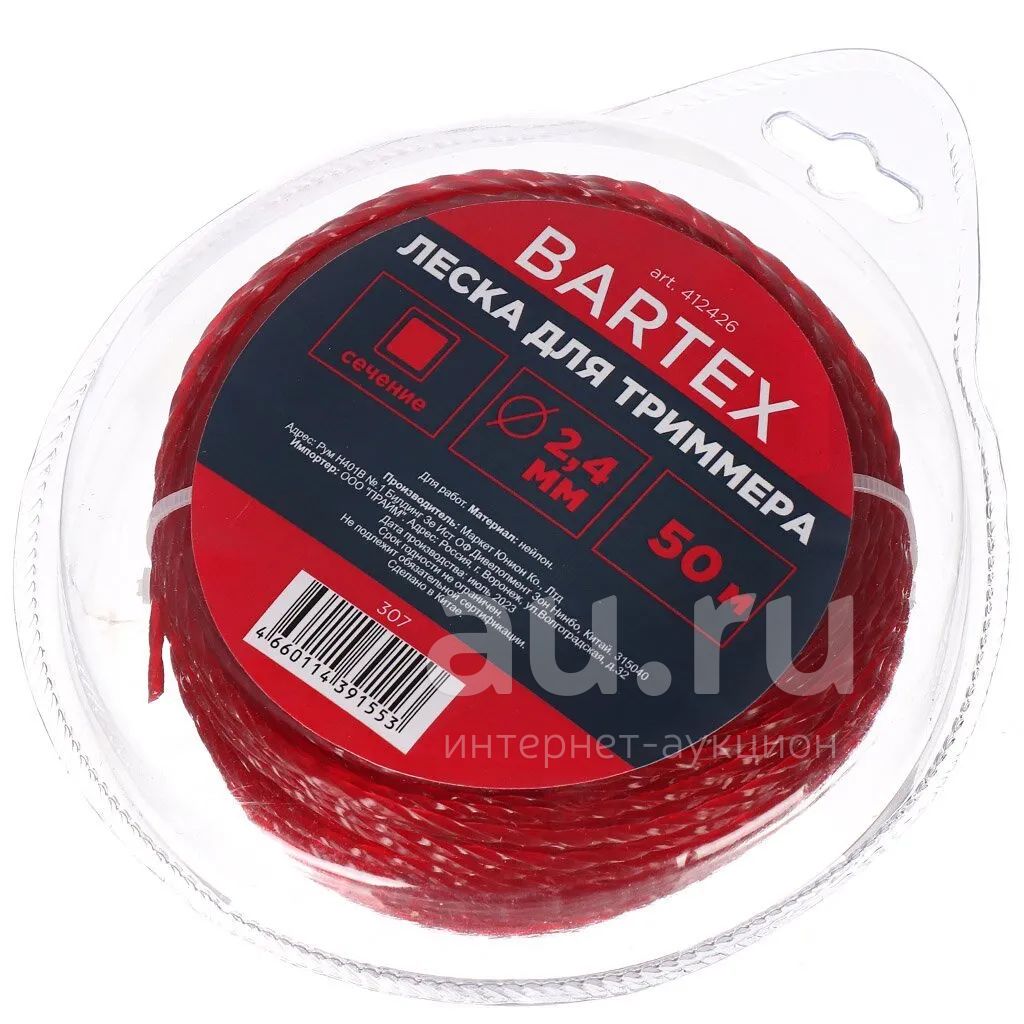 Леска для триммера 2.4 мм, 50 м, квадрат, Bartex, красная, блистер