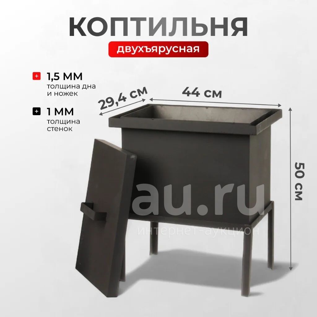 Коптильня 2 яруса, 44х31х29.4 см, сталь, 1.5 мм, с поддоном, 2 решетки, СП-КП8,1