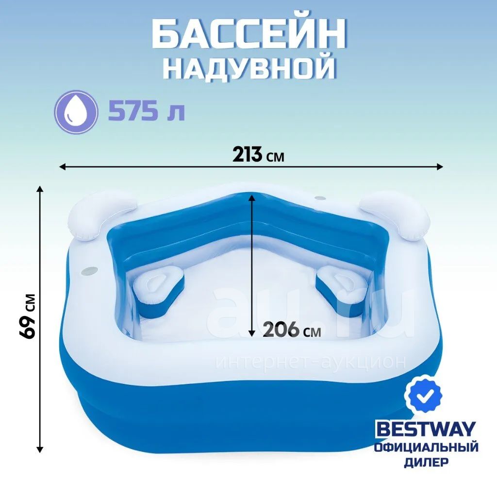 Бассейн надувной Bestway, 213х206х69 см, 54153, 575 л, с сиденьями и подголовниками