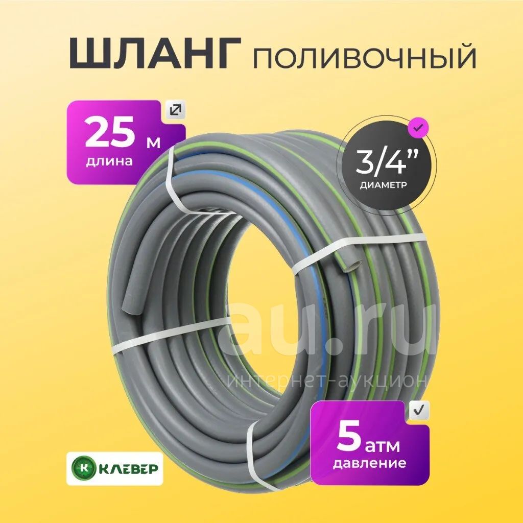 Шланг поливочный, 3/4 '', внутренний d19 мм, 5 атм, 25 м, 3 слоя, Клевер, ТЭП, серебро