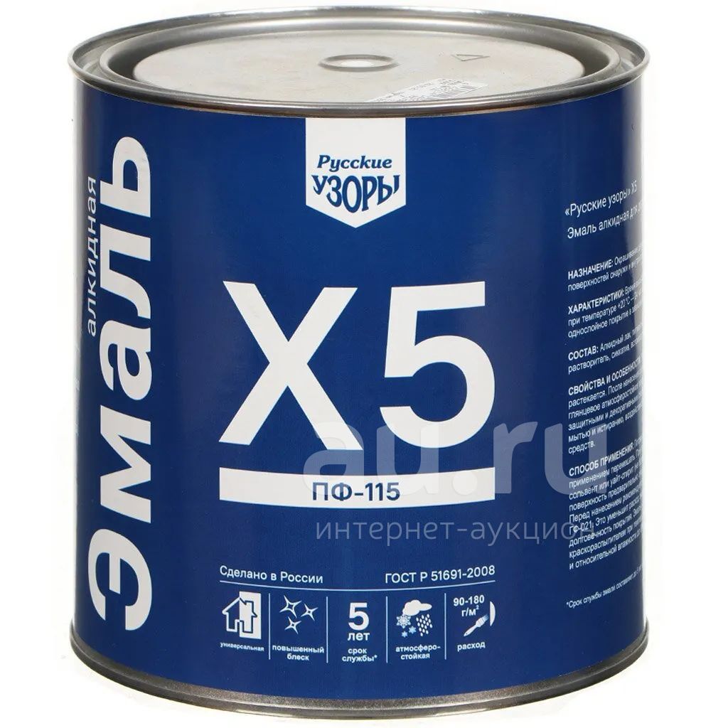 Эмаль Русские узоры, Х5 ПФ-115, алкидная, глянцевая, зеленая, 2.8 кг