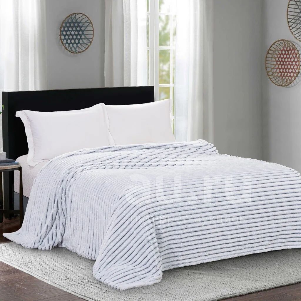 Плед евро, 200х220 см, 290 гр, велсофт, 100% полиэстер, CL Home, Marmari Полоски, серый, 200/001-MARE/LA