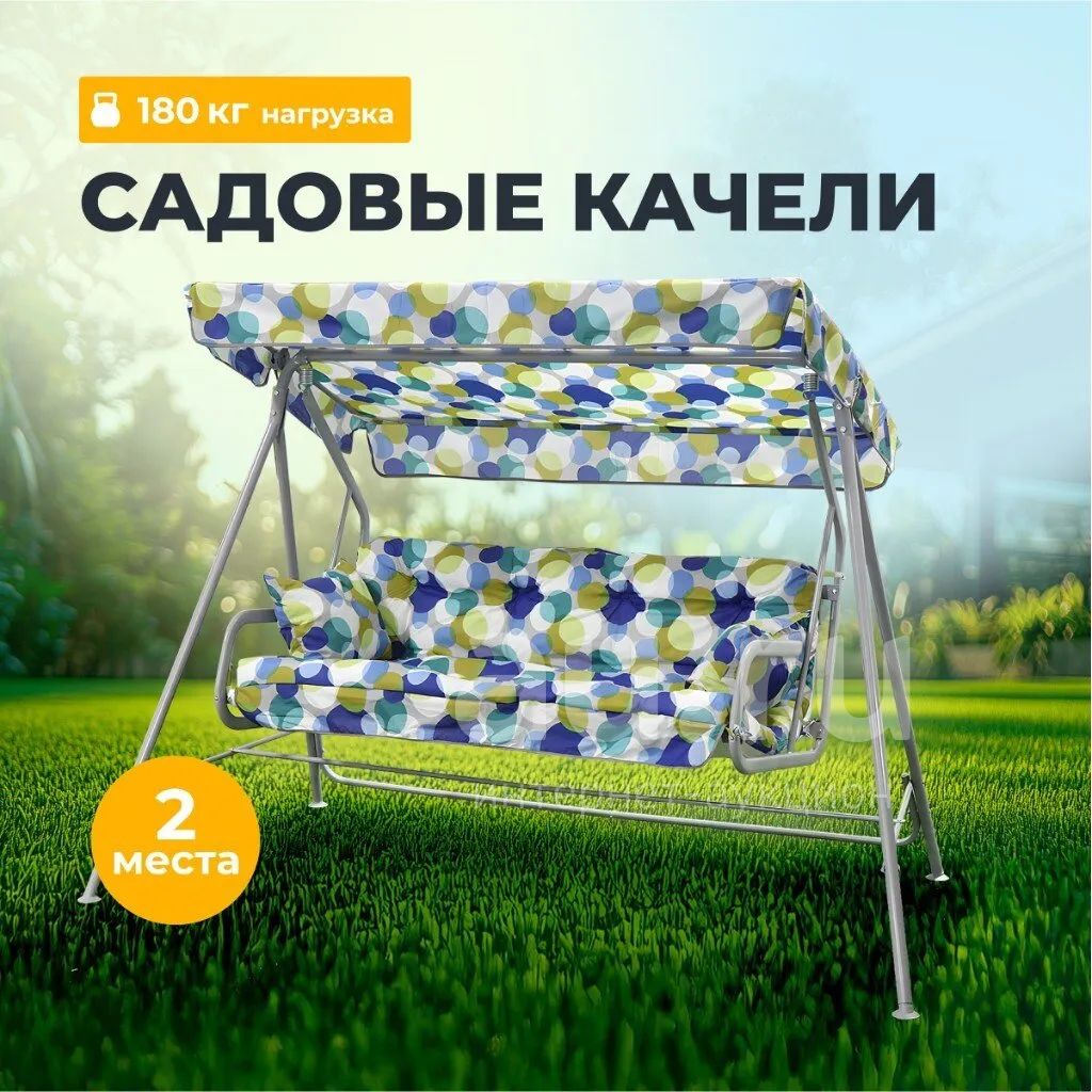 Качели садовые 2-местные, 204х121х144.5 см, 180 кг, Olsa, Бари, подушка, С821, металл