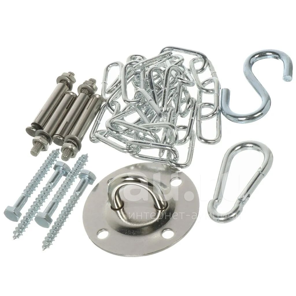 Комплект для подвесных кресел цепь стальная 1 м, 4 шурупа для дерева, 4 шурупа для бетона, потолочный