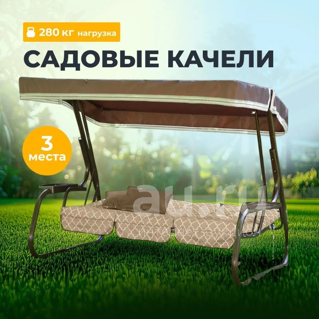 Качели садовые 3-местные, 236.5х138х166.5 см, 280 кг, Olsa, Родео-2, раскладываются в кровать, подушка, с 909/119 п, сталь