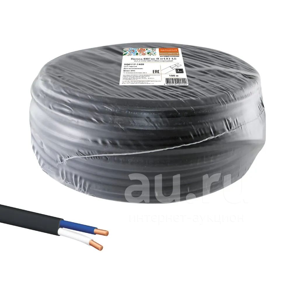 Провод ВВГп нг, 2х1.5 мм², 100 м, медь, силовой, негорючий, ТУ, черный, TDM Electric, Народная, SQ0117-1405/SQ0117-1409