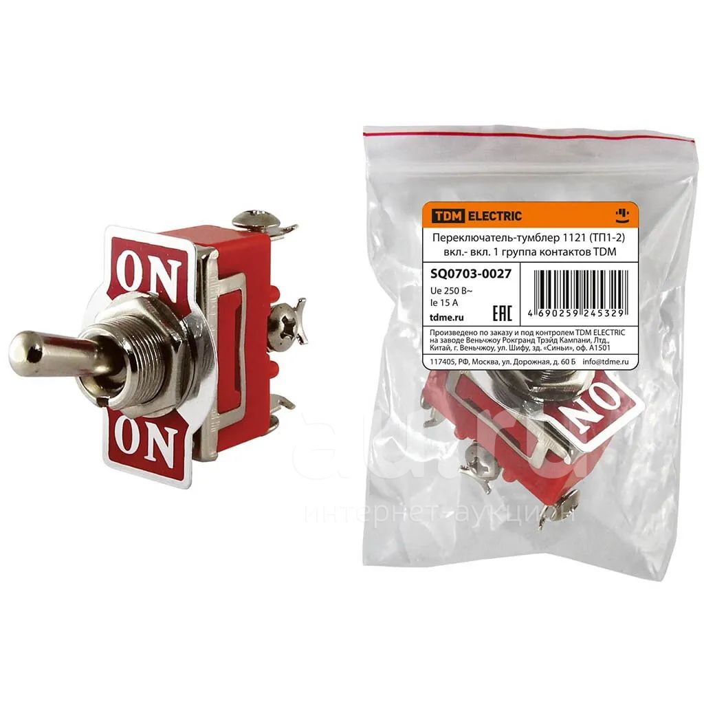 Переключатель-тумблер вкл.- вкл. 1 группа контактов, TDM Electric, 1121 ТП1-2, SQ0703-0027