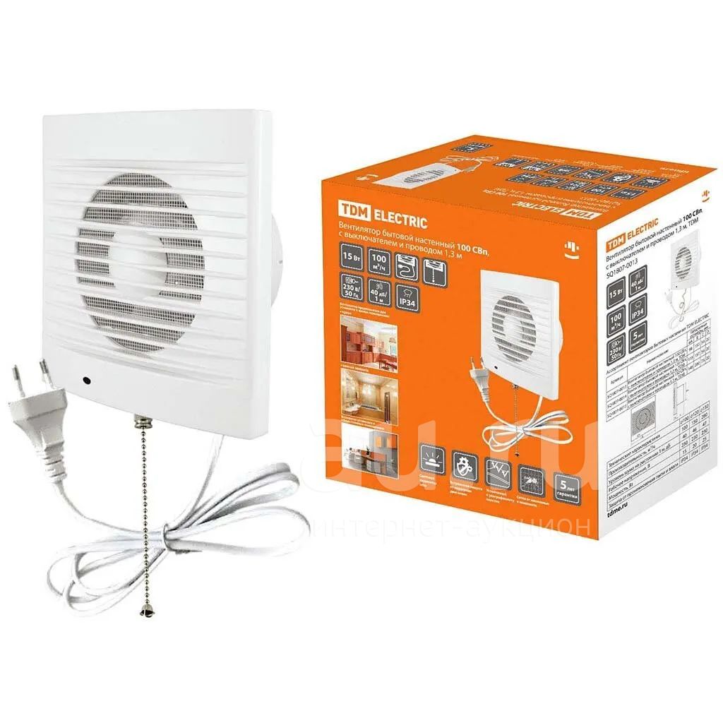 Бытовой настенный вентилятор TDM 100 СВп, с выключателем и проводом 1,3 м, SQ1807-0013 обладает мощностью 15 Вт и производительностью 100 м3/ч. Прибор устанавливается в кухнях, санузлах, душевых и других бытовых помещениях. Корпус и решетка вентилятора изготовлены из ABS-пластика.
