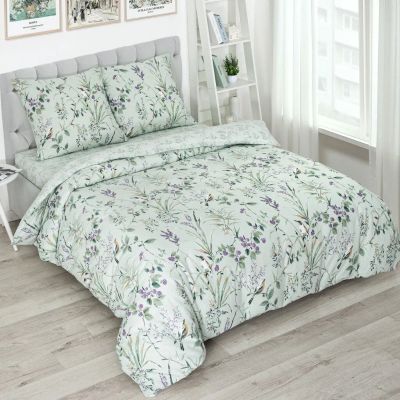 Постельное белье евро, простыня 200х216 см, 2 наволочки 70х70 см, пододеяльник 200х215 см, Василиса, бязь, Колокольчики