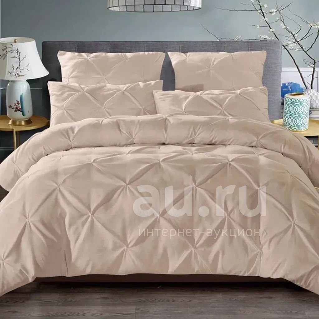 Постельное белье 2-спальное, простыня 180х200 см, 2 наволочки 70х70 см, 2 наволочки 50х70 см, пододеяльник 180х215 см, простыня на резинке, Cleo, микросатин, бежевое, коллекция Casa Mare, 21/025
