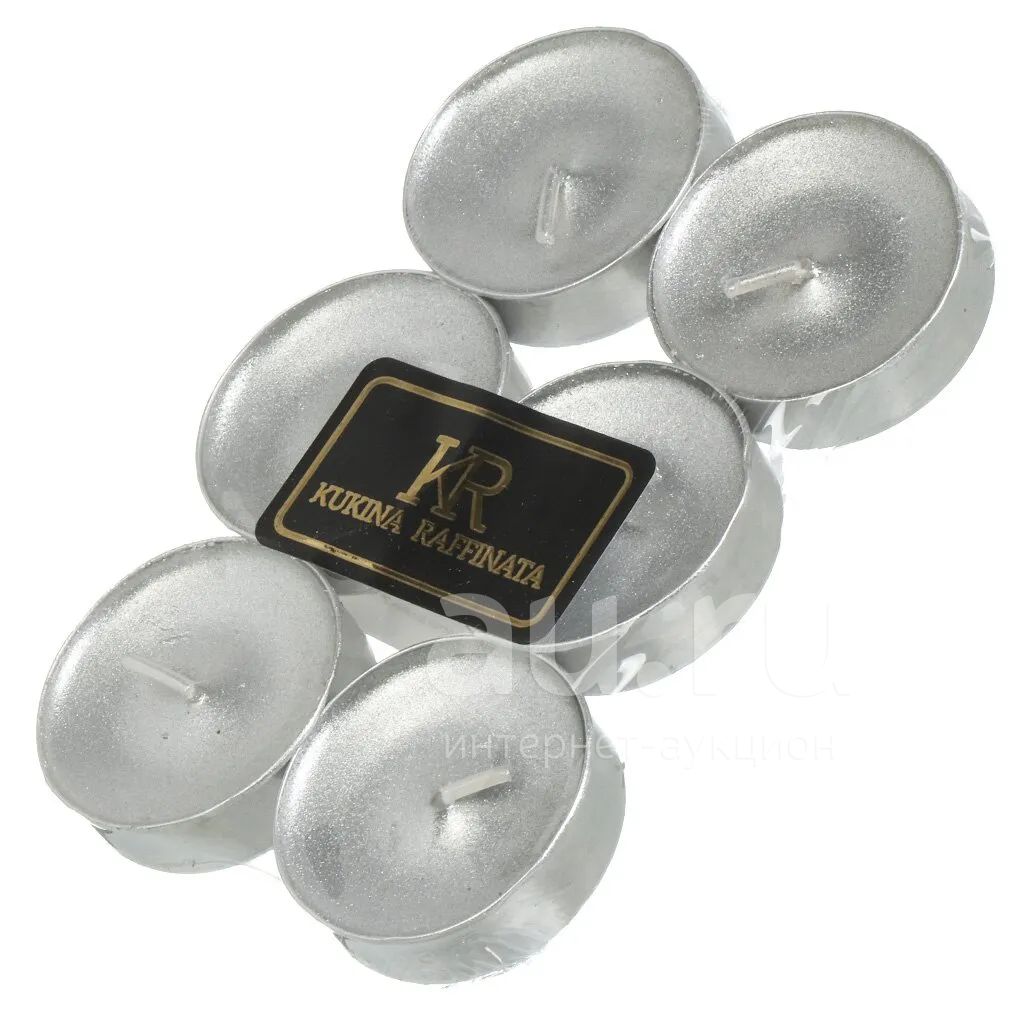 Свеча декоративная чайная, 1.2х3.8 см, 6 шт, серебро, лакированная, 400231