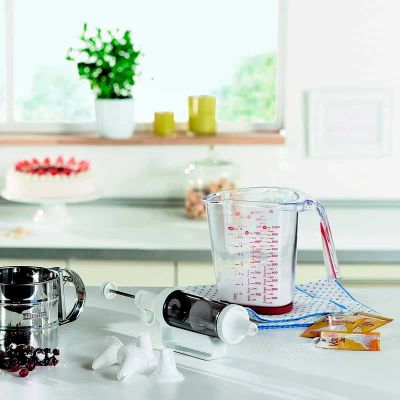 Изделие предназначено для замера необходимого количества продуктов во время приготовления различных блюд. Кремы, коктейли, фруктово-ягодные муссы удобно взбивать блендером прямо в этой кружке. Для удобного слива содержимого у ёмкости есть эргономичная ручка и носик