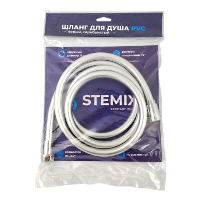 Шланг для душа, ПВХ, 2 м, серый серебристый, Stemix, STM 400-3