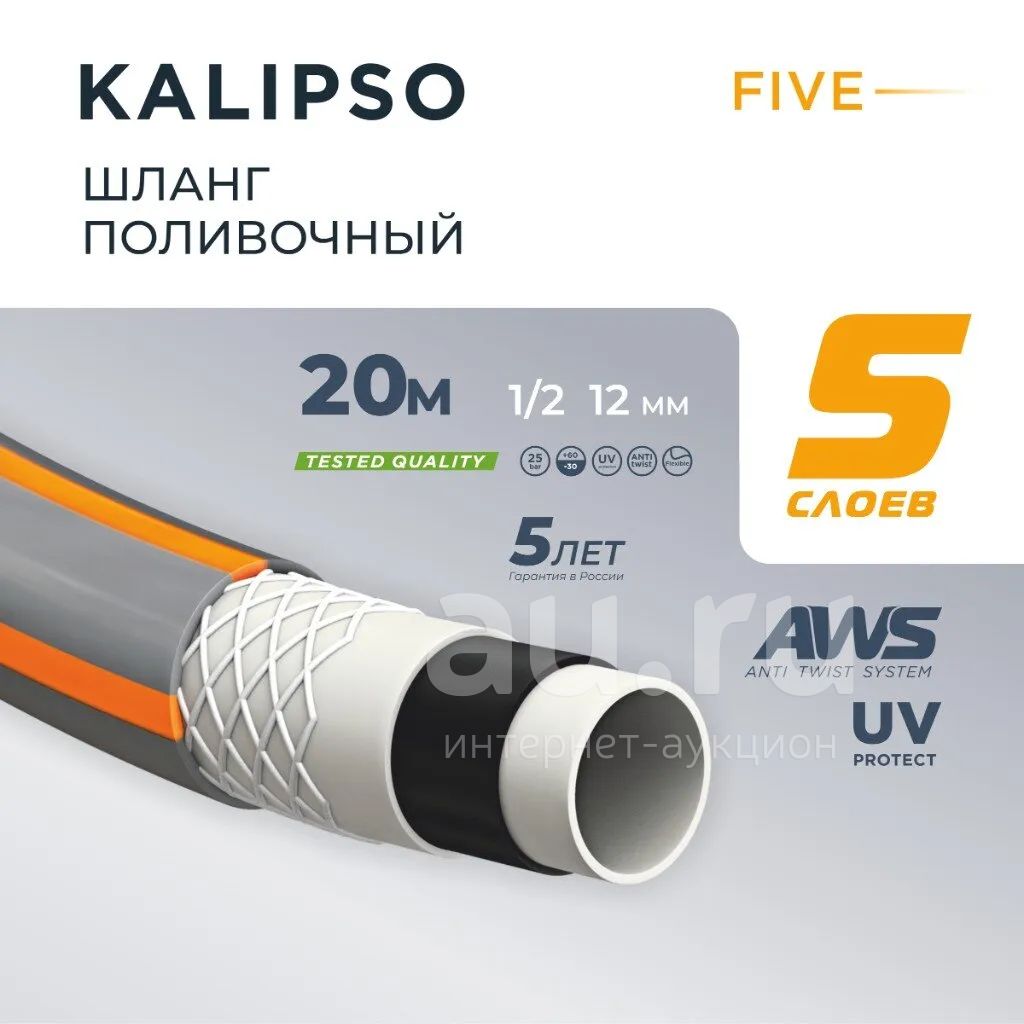 Шланг поливочный, 1/2 '', внутренний d12 мм, 25 атм, армированный, 20 м, 5 слоев, Kalipso, Five, ПВХ, антиторсионный, всесезонный, AGL261220