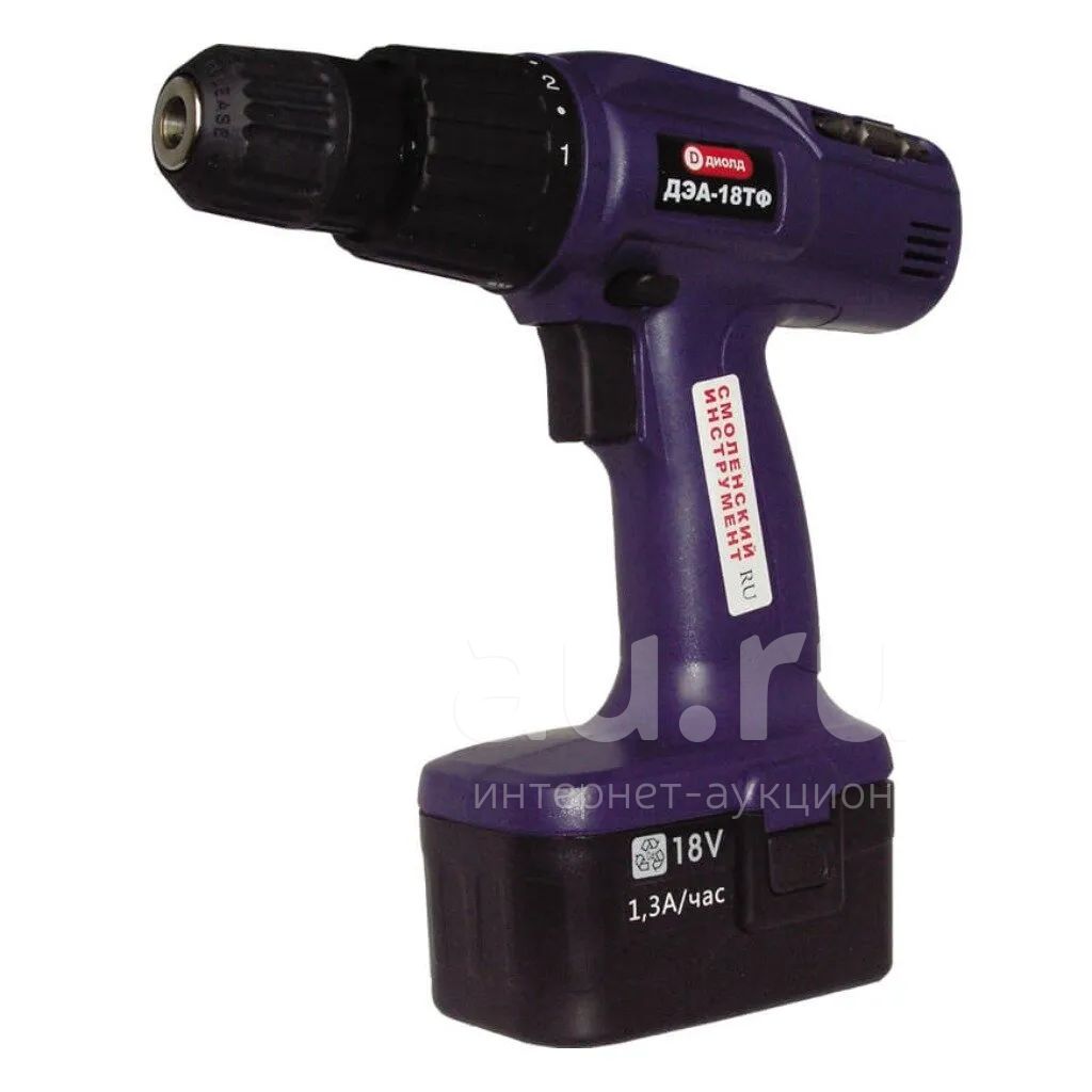Дрель Диолд ДЭА-18ТФ предназначена для бытового применения и имеет автономный источник питания — никель-кадмиевую аккумуляторную батарею. В модели предусмотрено плавное изменение числа оборотов шпинделя, а также изменение направления его вращения на противоположенное (реверсирование).