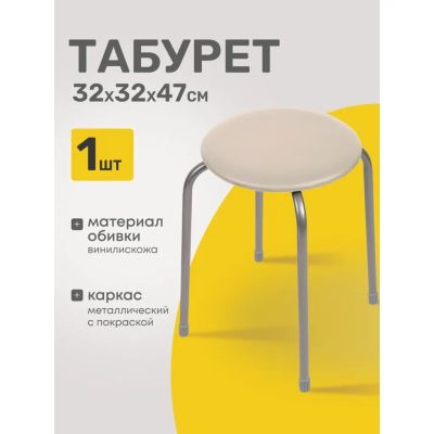 Табурет 340х320х470 мм, светло-серый, сиденье круглое, винилискожа, на болтах, на четырех металлических опорах, Nika, Фабрик 2, ТФ02/СС