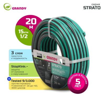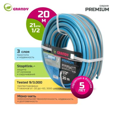 Шланг поливочный армированный Grandy Expert+ не подвержен локальным вздутиям, не образует трещин и изломов. Проверен на герметичность, концы шланга запаяны под давлением.