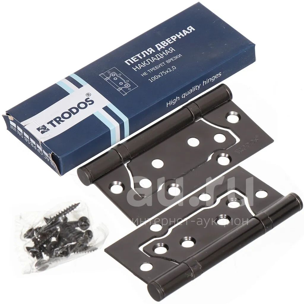 Петля накладная для деревянных дверей, Trodos, 100х75х2 мм, 201118, без врезки, графит