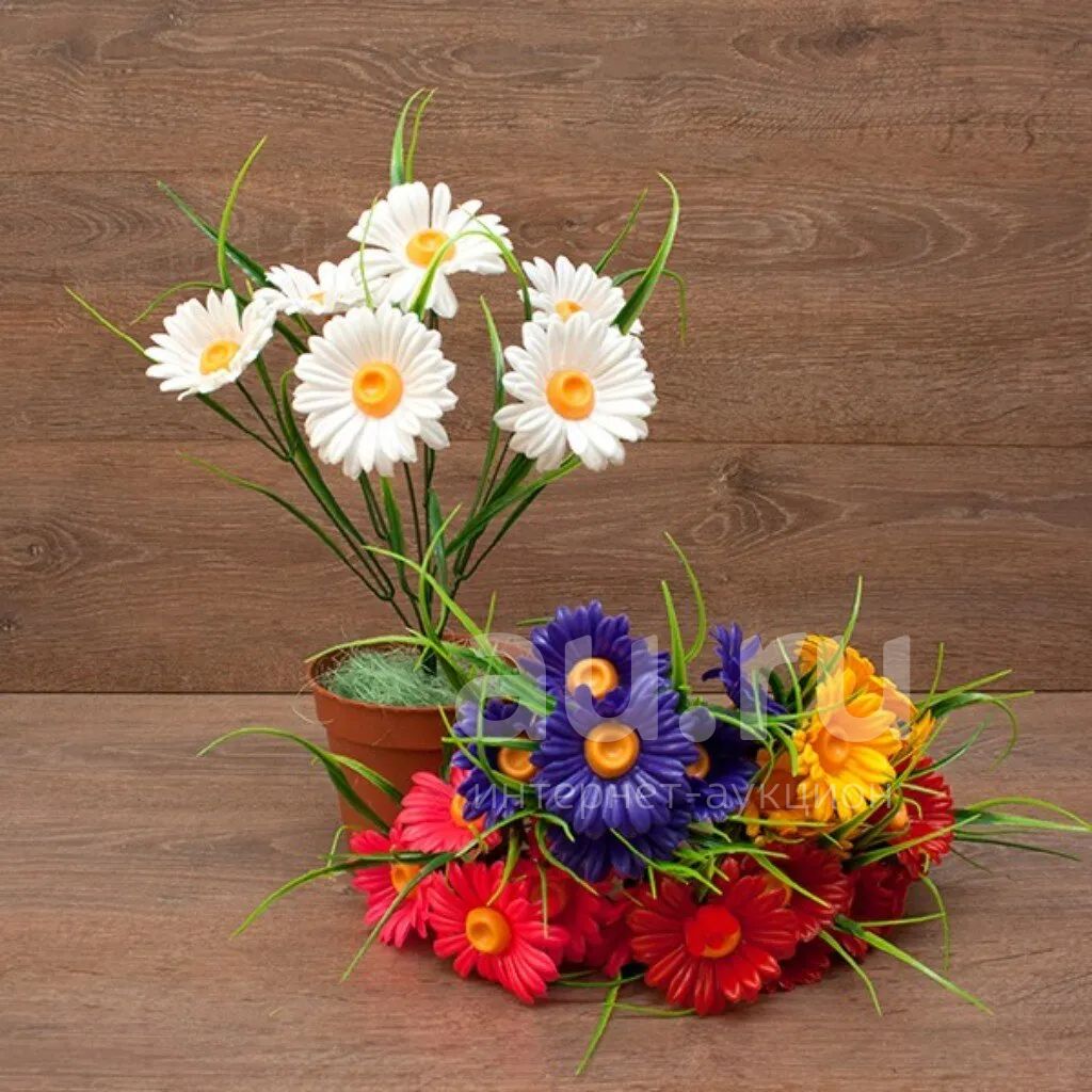 Цветок искусственный пасхальный, Ромашка, 6 головок, 42 см, F49-153