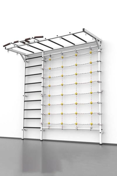 основная информация рукоход разновысокий. предназначен для детей от 1 до 7 лет. дополнительные характеристики размер мата: длина 1250 мм, ширина 950 мм, толщина 40 мм. производство россия. комплектация: металлический каркас вертикальная длинная и короткая лестницы горизонтальная лестница — рукоход два турника мат складной
