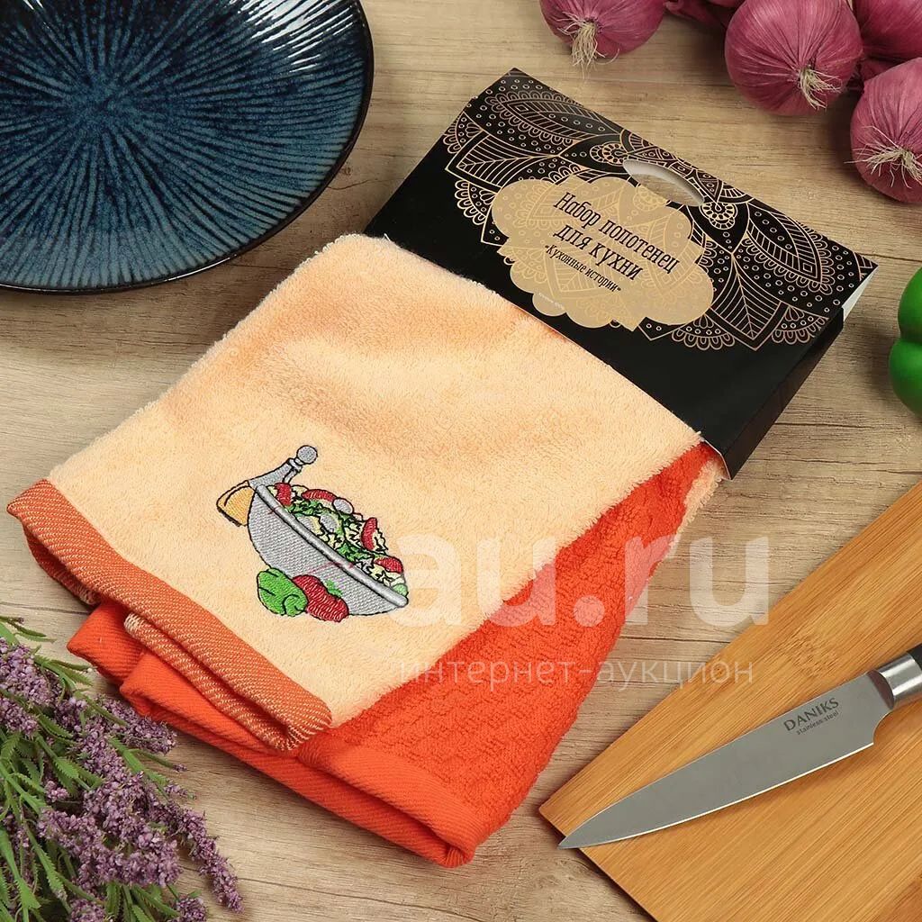 Набор полотенец кухонных 2 шт, 30х50 см, махровый, 100% хлопок, 420 г/м2, Barkas, Кухонные истории Салат, персиковый, оранжевый, Узбекистан