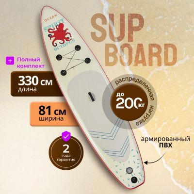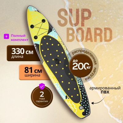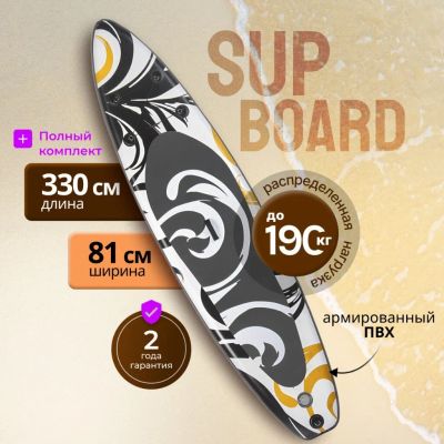 Сап борд надувной 330х81х15 см, одинарный ПВХ, рюкзак, насос, весло и лиш, ремкомплект, 140 кг, SUP010