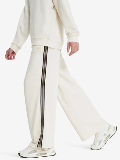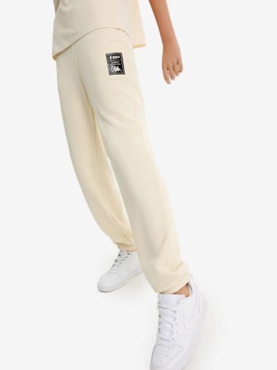 Брюки палаццо на резинке в нежном кремовом оттенке. Изготовлены из мягкого трикотажа футер-трехнитка (100% хлопок). Оснащены шнурком в поясе, позволяющим регулировать посадку изделия.