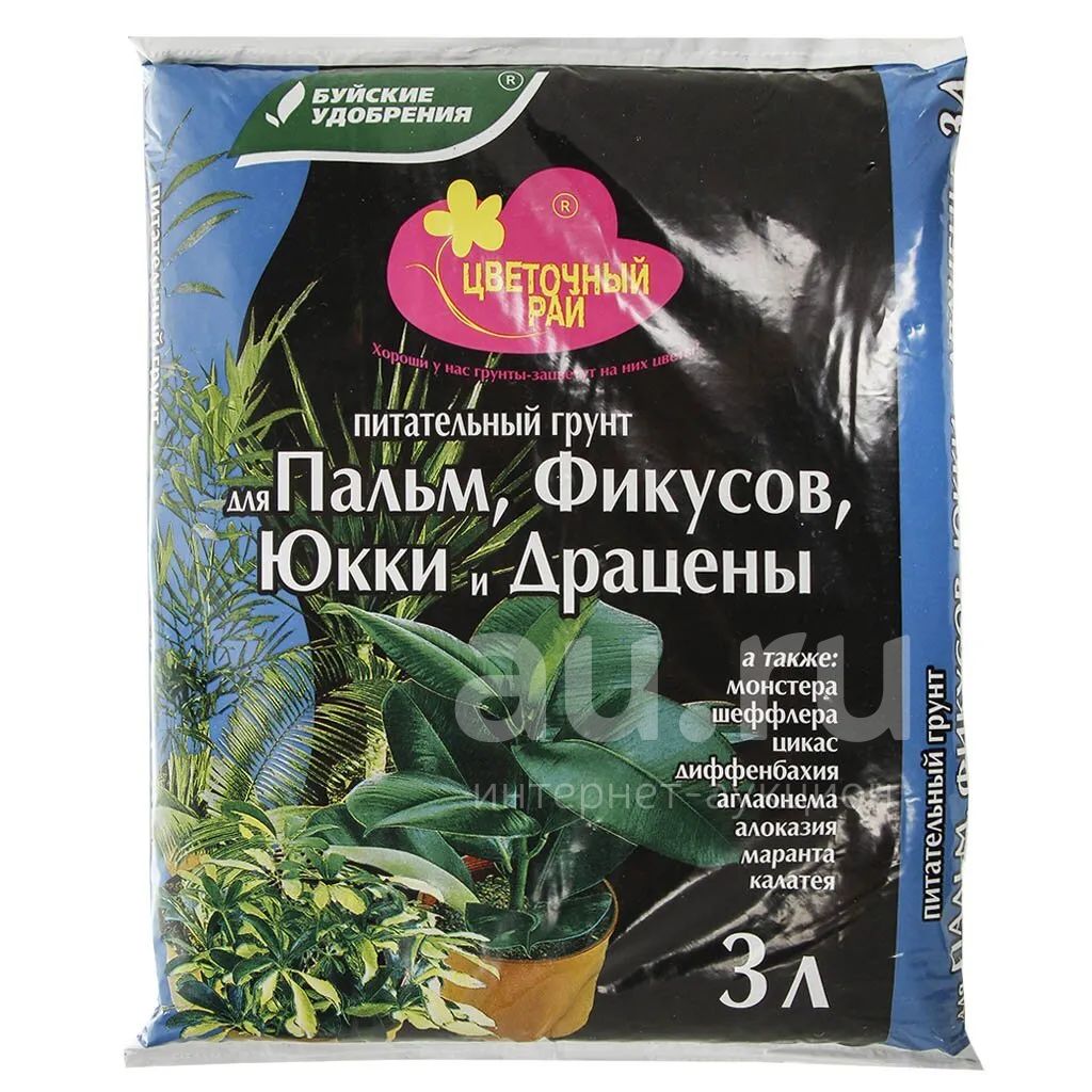 Грунт Цветочный рай, для пальм, фикусов, юкки и драцены, 3 л, БХЗ