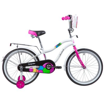 Велосипед, предназначенный для девочек в возрасте от пяти до девяти лет, без переключения передач. Технические особенности: прочная стальная рама, жесткая стальная вилка, одинарные алюминиевые обода, ножные педальные тормоза, защита цепи, съемные боковые колеса, крылья, задний багажник, катафоты, мягкая накладка на руль, передняя корзинка, звонок. Подходит для обучения и прогулочного катания в городских условиях. Диаметр колес - 20 дюймов. Вес - 12,6 кг. Особенности велосипеда: Багажник, Боковые колеса, Защита цепи, Защитная накладка на руль, Звонок, Катафоты, Корзина, Крепления для боковых колес, Крылья, Мягкая накладка на руль, Ножной тормоз. Регулировки и настройки: Подъем руля, Подьем сидения.
